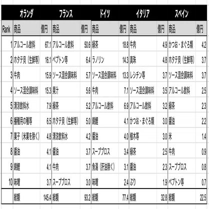 EU各国への日本の農林水産物・食品輸出状況(2023年)JETRO資料から作成