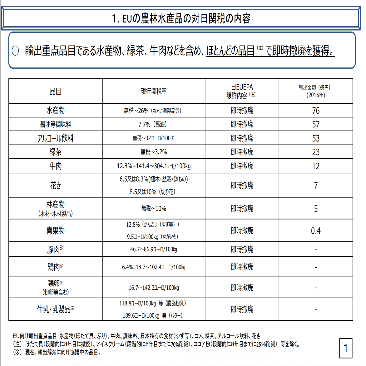 マカロニ・スパゲティ、乳製品、ワインなど、輸入において日本が関税を緩めた商品もあり、相互にメリットがあるように合意形成がされました。